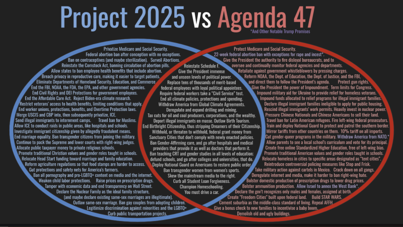 하지만, Project 2025와 트럼프의 대선공약인 Agenda 47 사이에는 문구만 비교해도 상당한 교집합이 존재하며, 내용 상으로는 상당히 동일한 맥락을 공유하고 있으며...