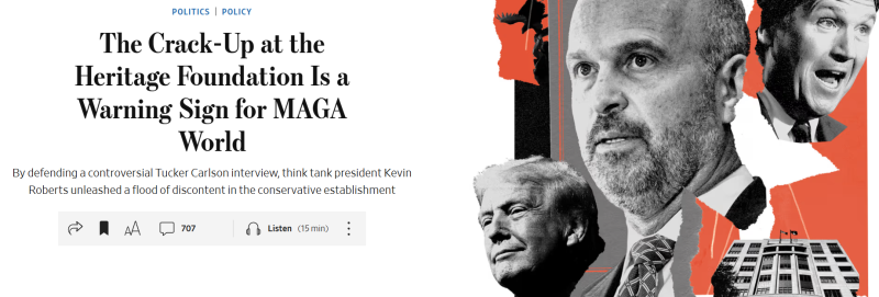 이러한 시각에 무게를 실어줄 수밖에 없는 것이 Project 2025 보고서를 발간한 해리티지 재단 내부에서 지나치게 강해진 MAGA의 영향력이 문제가 되어 내부 갈등이 표출되었습니다.
