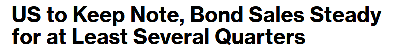 재무부는 현재의 경매 규모를 유지할 것이며, 다음 주에 있을 3년, 10년, 30년 만기 채권의 경매 총액은 이전과 동일한 1,250억 달러가 될 예정입니다.