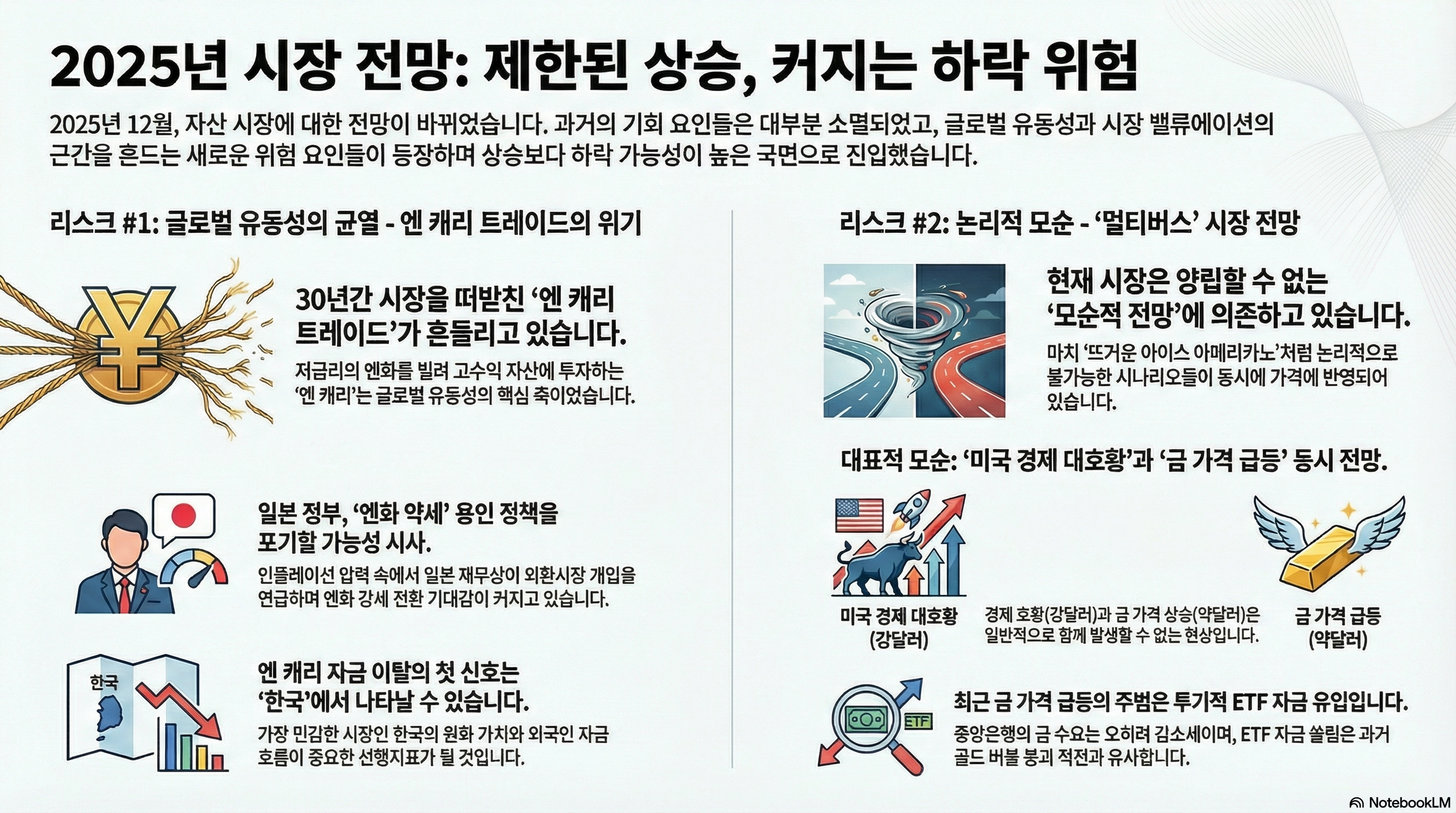 우리가 일본을 주시하는 이유는 엔 캐리 유동성때문입니다. 전 세계 유동성의 근간은 달러로 이루어졌지만, 엔 캐리 유동성은 대표적인 레버리지 유동성으로 전 세계 자산시장을 떠받침과 동시에 변동성의 근원이 되는 통화이기에 중요합니다.