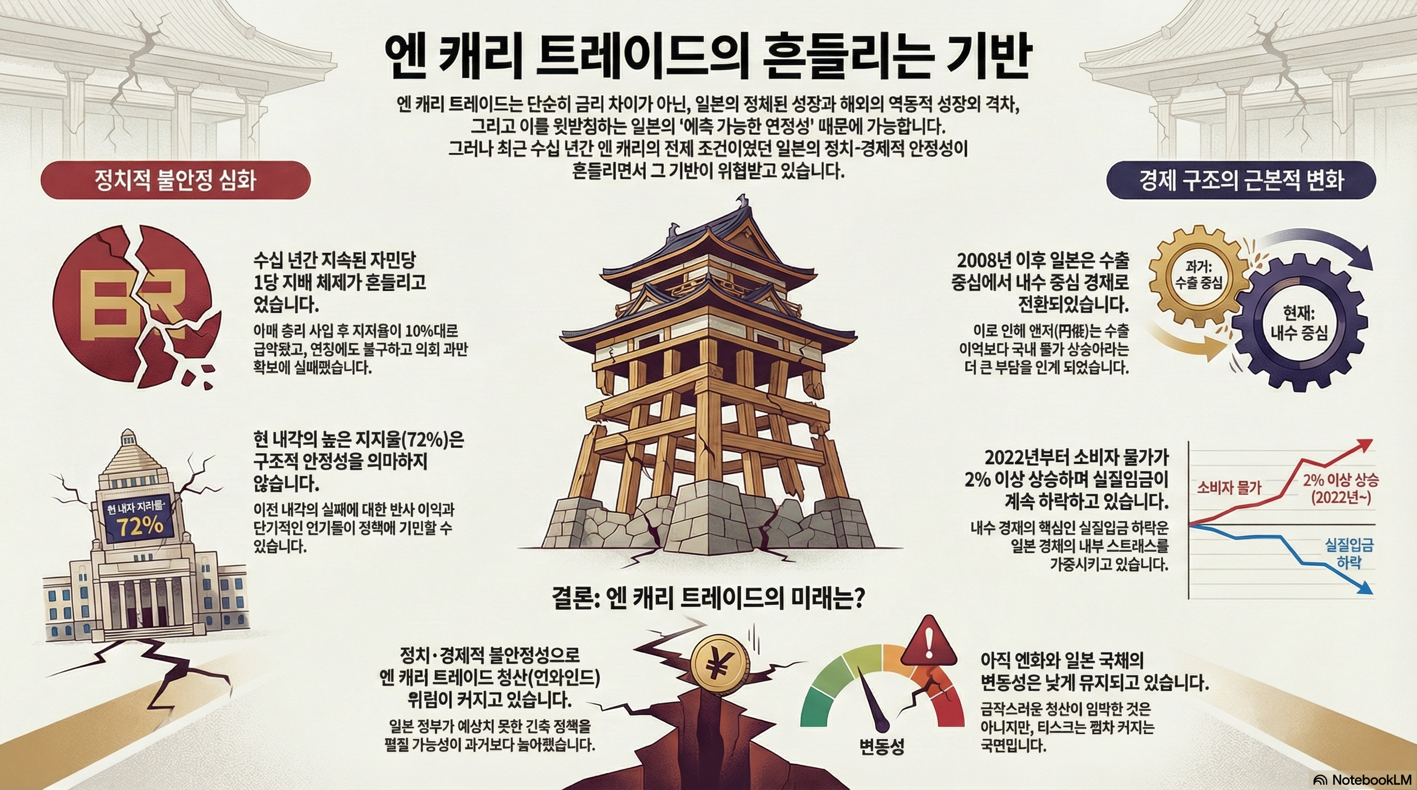 그래서, 엔 캐리가 가능하게 만드는 가장 기본적인 요건은 바로 안정적인 일본의 정치경제입니다. 그러면, 일본의 정치 경제 상황은 안정적인가... 이걸 생각해 봐야겠죠.