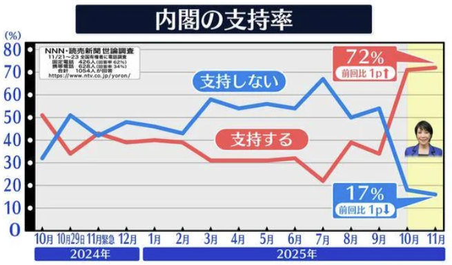 다행스러운 점은 다카이치 내각의 지지율이 어마어마하게 ...