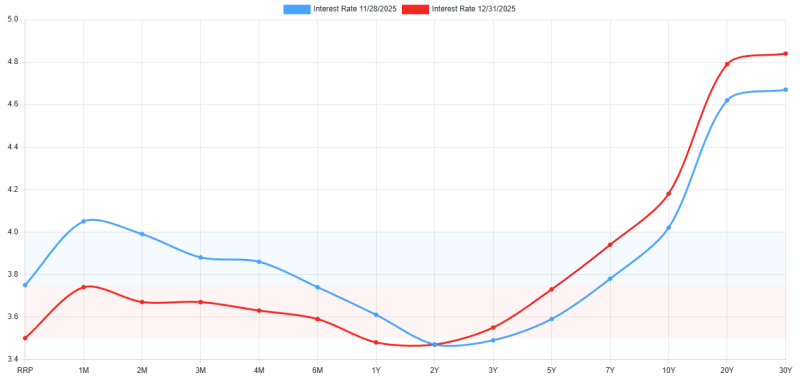 12월 초와 비교하면 단기금리는 거의 한계까지 내려온 셈이고, 장기금리는 계속해서 상승하고 ...
