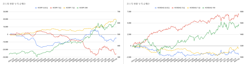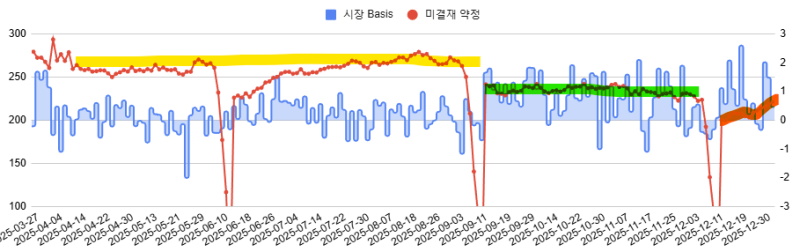 환 헷지를 통해 어찌됐든 주식 현물을 매수했으니, 현물 주식의 변동성에 대한 헷지가 필요했겠죠. 이를 위해 지수 선물 숏 포지션을 구축했고, 그 결과가 선물 미결제 약정으로 나타났다... 그런데, 9월부터 매수보다 매도 물량이 많았으니, 자연스럽게 헷지의 필요성이 줄었고, 선물 숏 포지션이 줄어들며 미결제 약정도 이전에 비해 한 레벨 다운... 저는 이렇게 흐름이 이어진다고 생각하고 있어요.