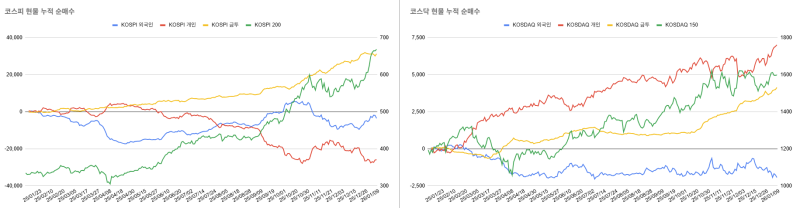 연말에 제가 가장 우려했던 시나리오는 외국인 매도가 이어지고 금투의 지수방어까지 흔들리는 상황이었는데, 현재까지 그런 우려는 현실화되지 않았습니다. 외국인은 배당락 이후 매수를 재개했고, 그렇다 보니 굳이 금투가 지수를 방어할 필요도 없었죠.