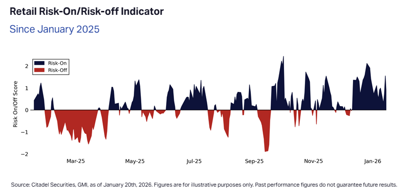 그러거나 말거나, 개인 투자자들의 리스크 온 심리에는 다시 불이 붙었습니다. Scott Rubner의 GMI에 개제되는 개인 투자자 RORO (Risk-On / Risk-Off) 지표를 보면, 한 동안 사그라들다가 다시 리스크 온 쪽으로 불이 강하게 붙었음을 확인할 수 있습니다. 1월 말까지 ...