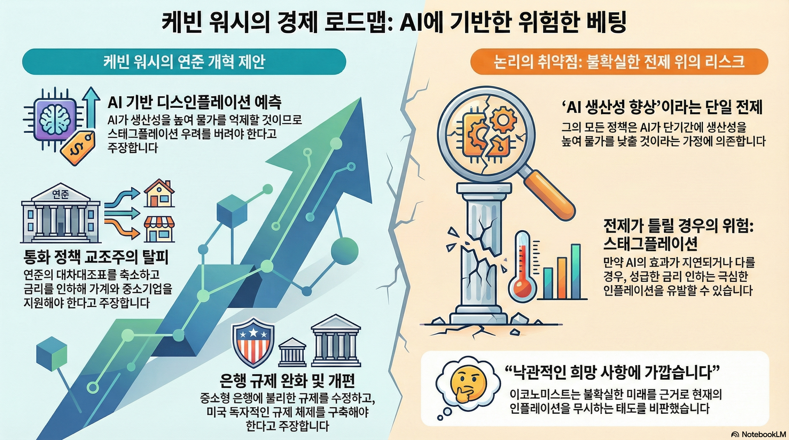 스태그플레이션 예측 폐기: 연준은 저성장과 고물가를 전제로 하는 stagflation 예측을 버려야 합니다. AI는 생산성을 높여 인플레이션을 억제하는 강력한 'disinflationary' 요인이 될 것입니다.