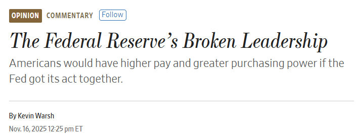차기 연준의장 결정 프로세스가 한참 진행 중이던 작년 11월에 WSJ 기고문을 통해 워시는 위와 같은 의견을 피력한 거죠. 본문을 보면 첫 문단의 두번째 문장부터 바로 트럼프 행정부 찬양에 들어갑니다. 그뿐만 아니라 본문 중간 중간... 트럼프 행정부의 조치에 대한 칭송이 줄을 잇습니다.