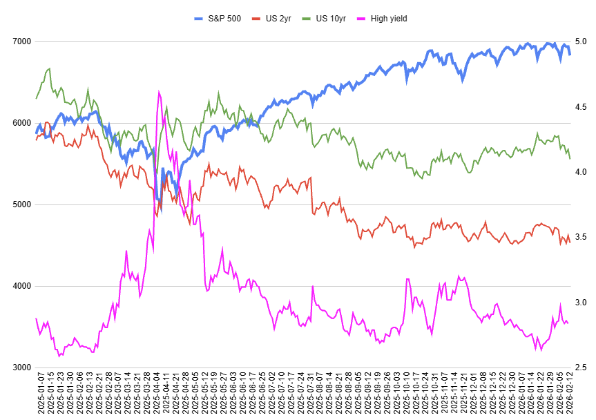 이번 주 미국 증시는 소폭 하락했습니다. 국채 금리도 전반적으로 하락하는 모습을 보였는데, 하이일드 스프레드는 정체되었으니 하이일드 회사채 금리도 내렸다는 거죠.