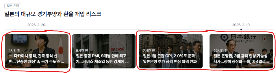 먼저 우측을 보면... 일본은행이 3월 기준금리 인상 가능성을 시사한 이후, 일본의 CPI는 2%대로 하락했습니다. 내용을 살펴보면 CPI 하락의 주된 원인은 유류세 인하 조치와 유가 하락이 겹친 일시적 요인으로 보입니다. 5% 이상의 임금 인상은 여전히 서비스 물가를 끌어올리고 있죠. 그래서 일본은행도 CPI가 발표되기 전까지는 3월 금리 인상 가능성을 내비쳤지만, CPI가 ...