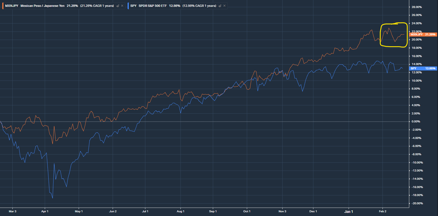 즉, 여기서도 1월 말 이후로 페소-엔 환율이 급락하는 상황은 완화되었으므로 안정을 찾았지만, 과거 패턴을 감안하면 현재의 횡보가 장기적인 안정을 의미하지는 않는다고 볼 수 있습니다.