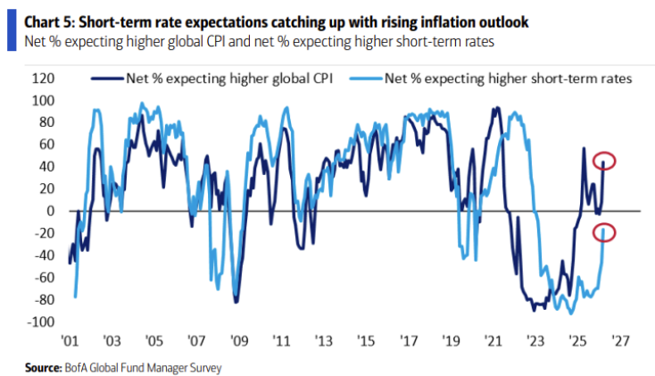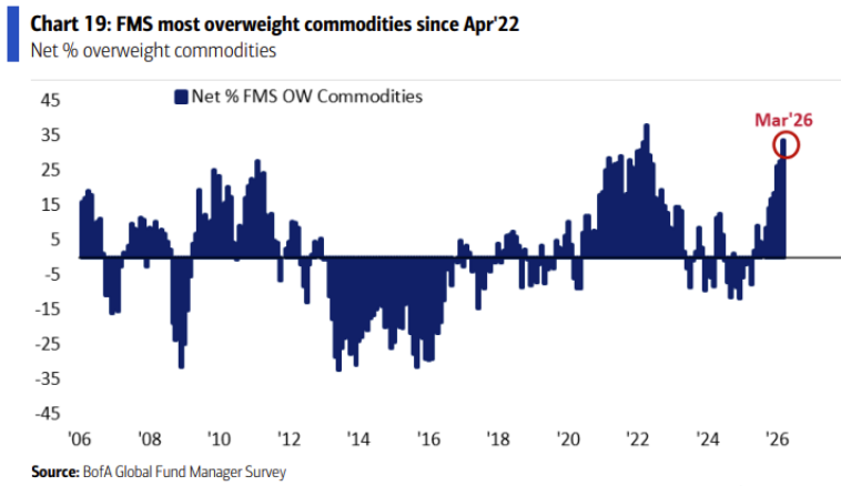 인플레이션 국면에서 가장 선호되는 자산은 원자재... 25년 4월 이후로 인플레이션에 대한 우려도 급격히 늘어나고, 달러비중도 크게 줄어들고, 원자재 비중확대도 급격히 늘어났네요. 기관 투자자들의 인플레이션 대비가 1년 가까이 이어지고 있습니다.