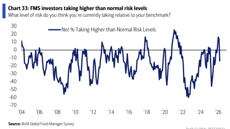 투자심리가 급격히 꺾였으니 당연히 risk-off 심리도 꺾입니다. 평상시보다 더 큰 리스크를 감수한다고 언급한 기관 투자자의 비중 역시 수직하락했죠.