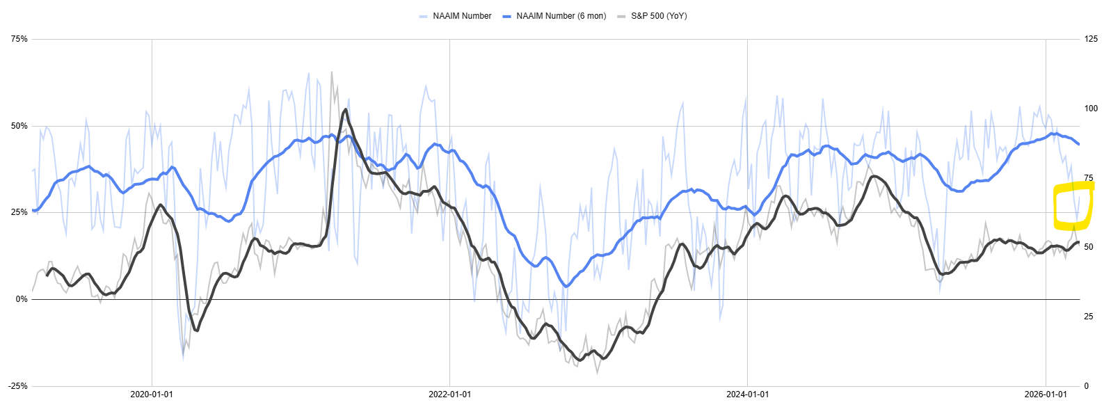 그래서인지 어째서인지... 이번 주 NAAIM (액티브 기관 투자자) 주식 노출도는 소폭 상승했습니다. 액티브 투자자들이 주식을 좀 샀다는 건데... 왜 그랬을까.