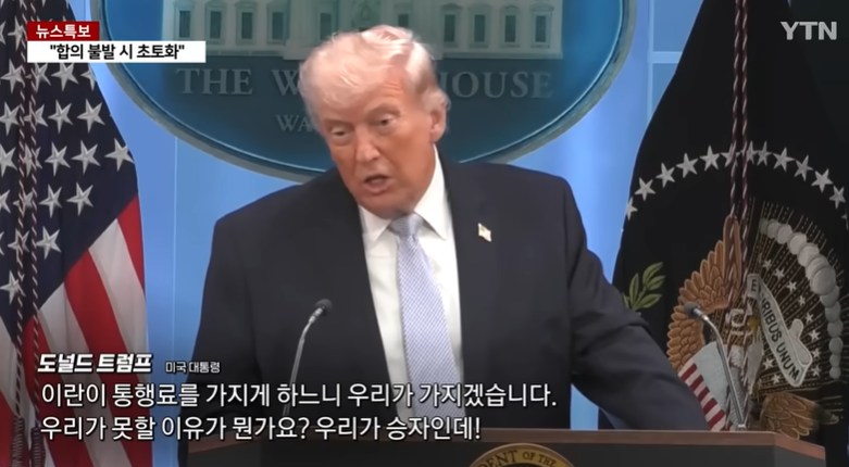 미국이 승자이니 호르무즈 해협 통행료를 미국이 걷겠다는 발언을 아무렇지 않게 하고 있는 트럼프...