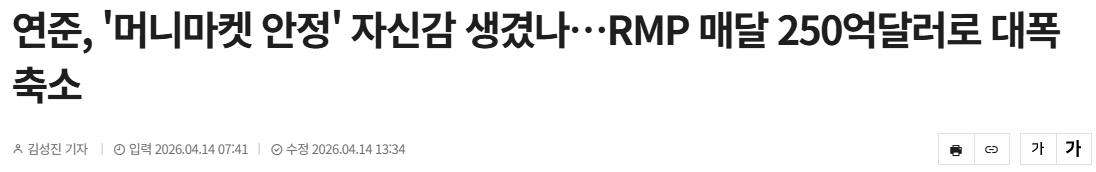 QE라고 그렇게 울부짖던 RMP (지준금 관리 프로그램) 는 SOFR가 안정을 찾으면서 그 규모를 대폭 축소할 것이라고 합니다. 이 역시도 시중 유동성 관점에서는 좋지 않은 뉴스죠.