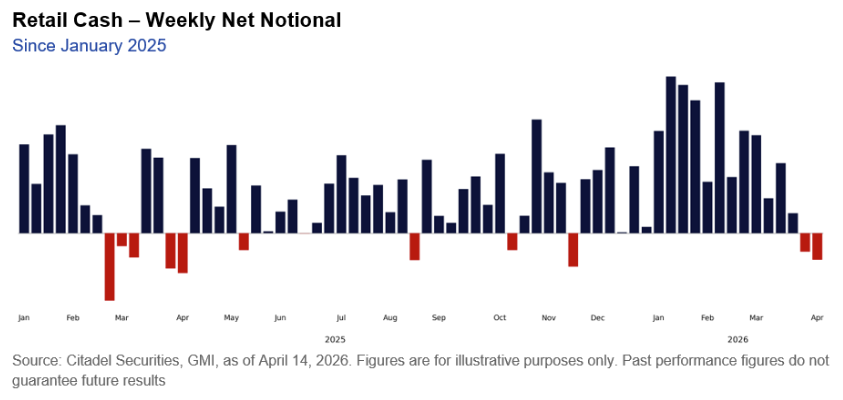 그러니까, 25년 4월의 급반등을 만들어낸 주체는 개인 투자자였다고 볼 수 있으며 이 성공의 기억을 간직한 개인 투자자들이 성공에 도취되어 있던 25년 4분기부터 누차 과거 아티클에서 언급했던 기관 투자자들의 대대적인 섹터 로테이션이 나오면서 분위기는 역전되었죠. 25년 11월부터 3월까지 5개월 동안 개인 투자자들의 상대성과는 꽤나 부진했습니다.
