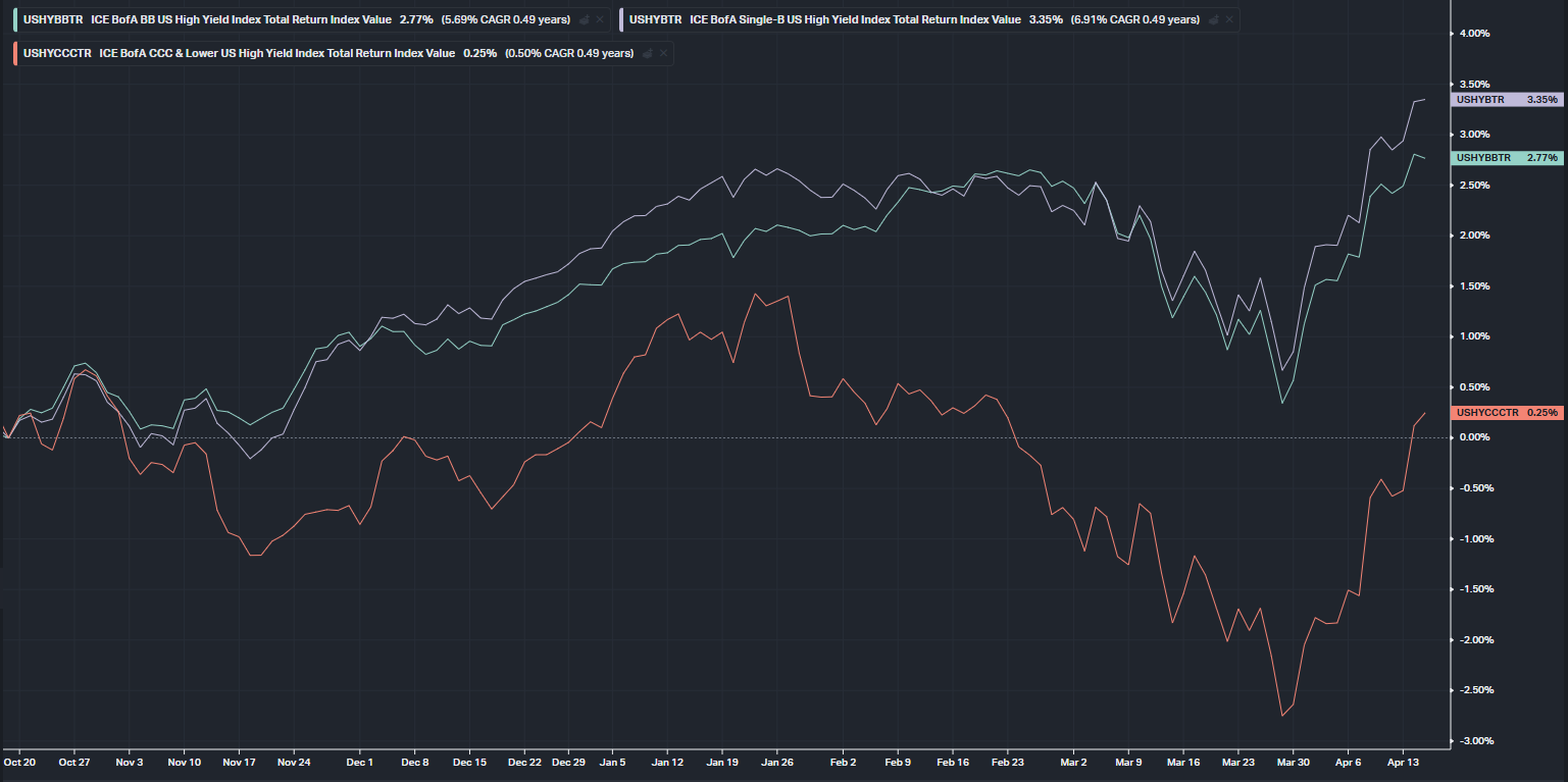 그나마 CCC 등급 회사채 가격은 아직 전고점을 넘지 못했다는 거? 이런 분위기 속에서 오히려 못 넘은 것이 신기할 지경입니다.