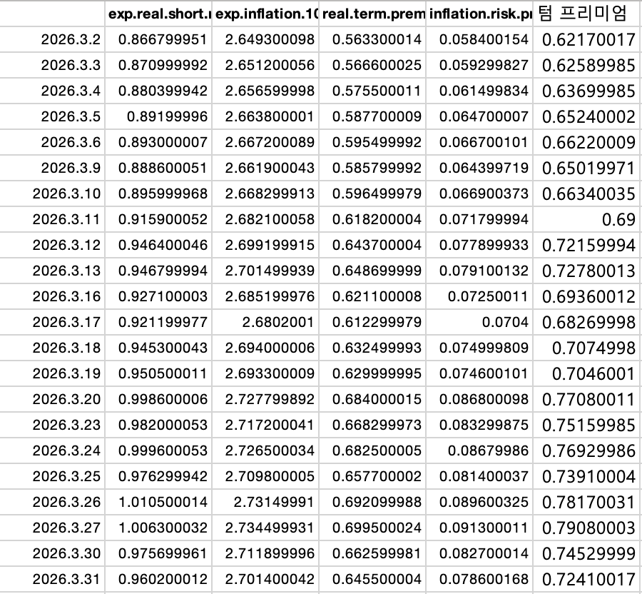 3. 기간 프리미엄은요… 국채 수급 부문과 + 통화정책 불확실성에 반응을 하는 항목입니다.