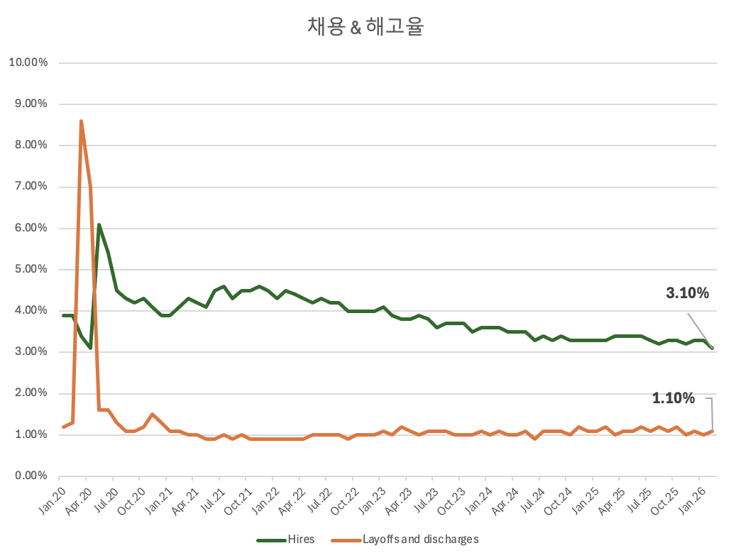 침체는 아니지만 여전히 저채용-저해고 국면을 유지하는 모습입니다.