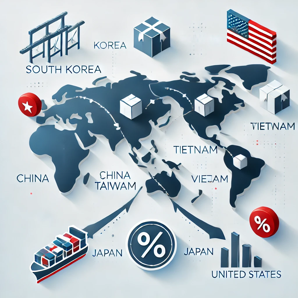 트럼프 대통령은 한국에 25%의 상호관세를 부과한다고 발표. 이는 한국이 미국에 50% 관세를 부과한다는 주장을 기반으로 절반 수준으로 설정된 것.