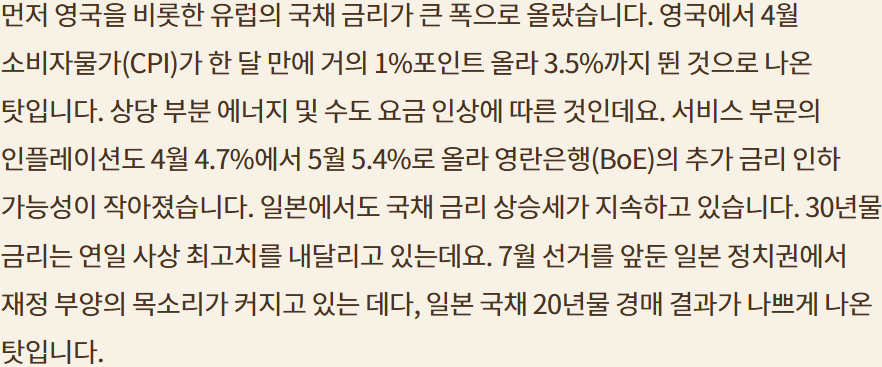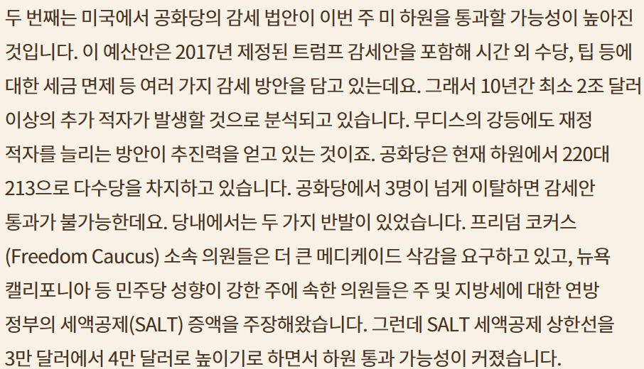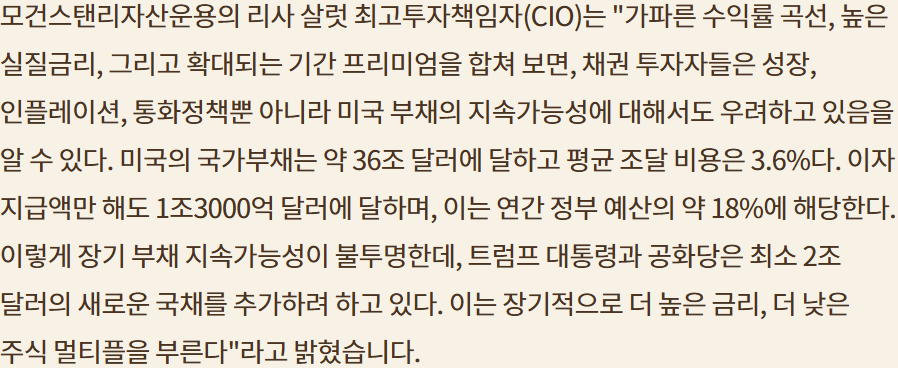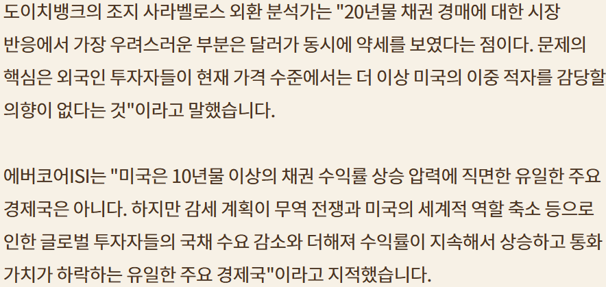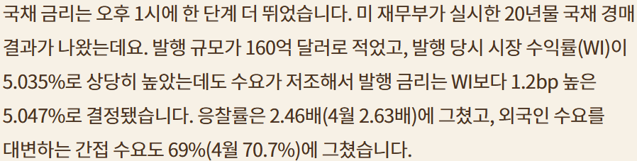 Ref:https://www.hankyung.com/article/202505215656i Summary> -국채 금리 상승요인 두드러짐. 달러와 디커플링. 달러 약세 기조 이어질듯 >아재님 시황 리뷰와 비슷 -재정적자와 정치권 전망 -시장 전고점 근처로 여러 시나리오 제시 -유가 상승; 이란 제재