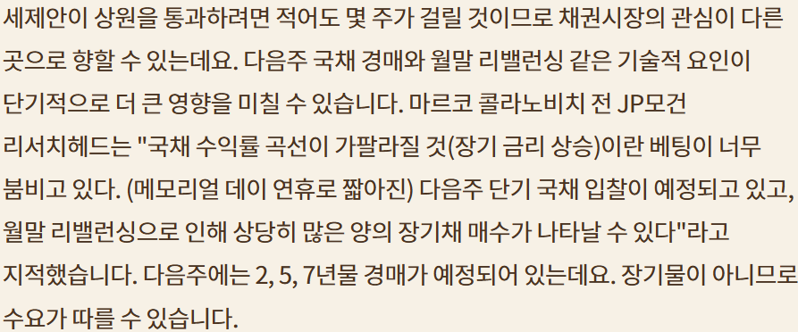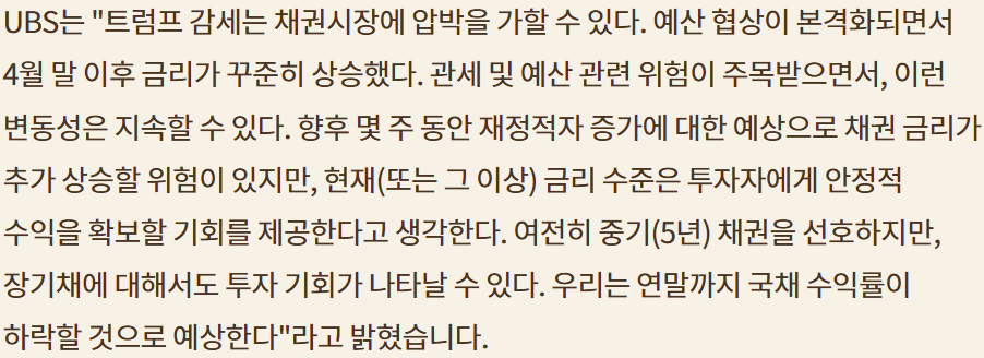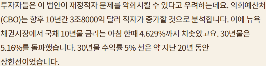 Ref:https://www.hankyung.com/article/202505215656i Summary> -국채 금리 상승요인 두드러짐. 달러와 디커플링. 달러 약세 기조 이어질듯 >아재님 시황 리뷰와 비슷 -재정적자와 정치권 전망 -시장 전고점 근처로 여러 시나리오 제시 -유가 상승; 이란 제재