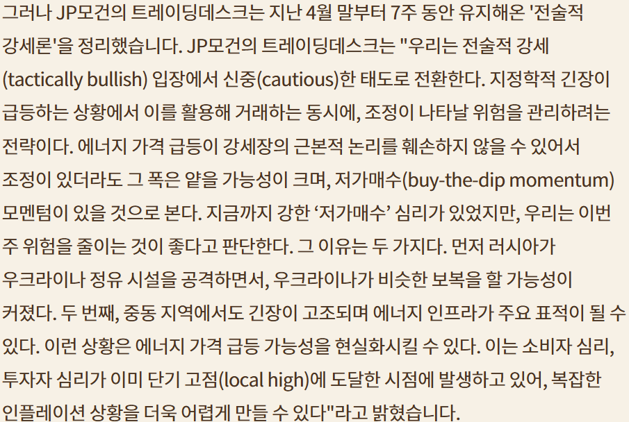 d.미국은 과거와 달리 에너지 수출국 (오일쇼크때와 상황이 다름), OPEC의 충분한 생산량 유지 (러시아가 문제)