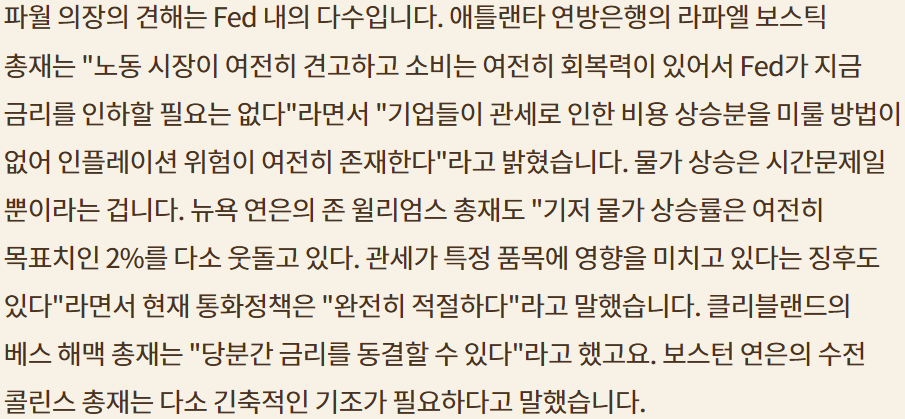 J .Powell 금리 인하에 신중한 입장 (Fed내 다수 의견) ; 인하 시사하는 Dovish들은 정치적 스탠스일까?