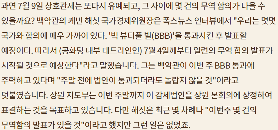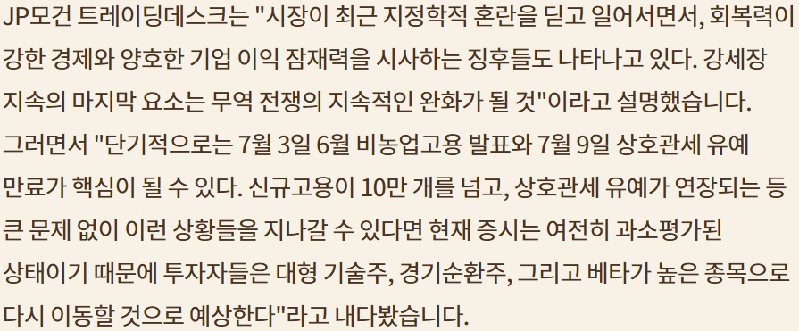 7/3 Nonfarm payroll, 7/9 Reciprocal Tarrif 분기점 ; Oil 처럼 Sell the News가 될런지?