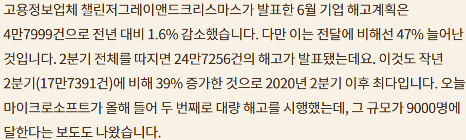 Conference Board 소비자 심리지수 하락; 경기 침체 조기 신호로 실업급여 청구 증가/여행 수요 감소; 카니발 등 여행 관련 실적은 견고