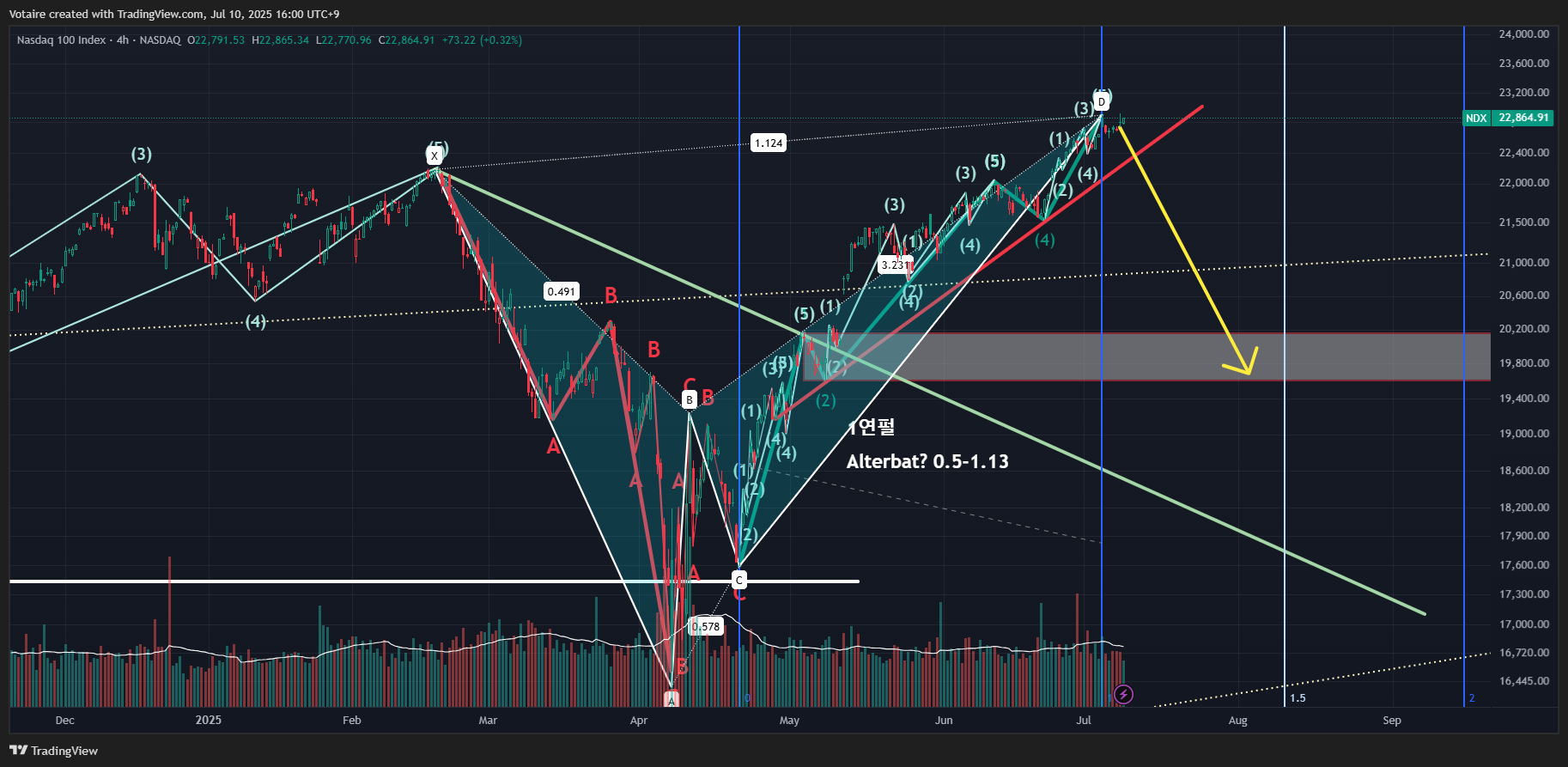 >>아직 숏은 아니다. 1파 연잔 임펄스의 2-4 추세선이 뚫릴때까지 기다렸다가 결정 (채권 숏은 너무 상투 잡은 는낌 ㅜ)