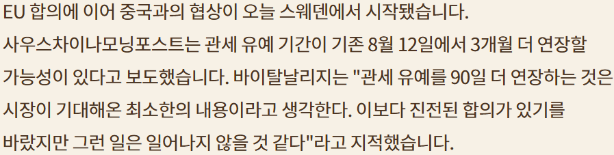 중국과 관세 협정은 이미 90일 유예 이야기; 이미 높은 관세 부과중으로 최종보스와 마지막 담판