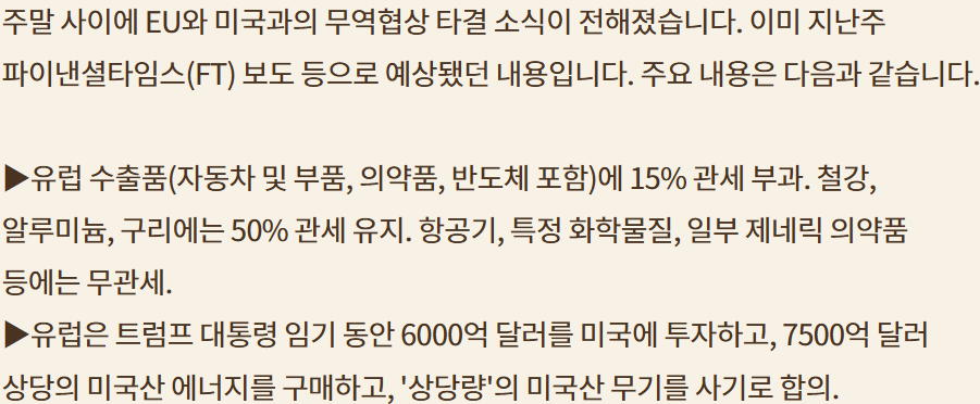 미국-EU 관세협상 타결: 에너지 부문 미 수출과 상당량의 무기 구매는 텍스트와 다른 해석 가능