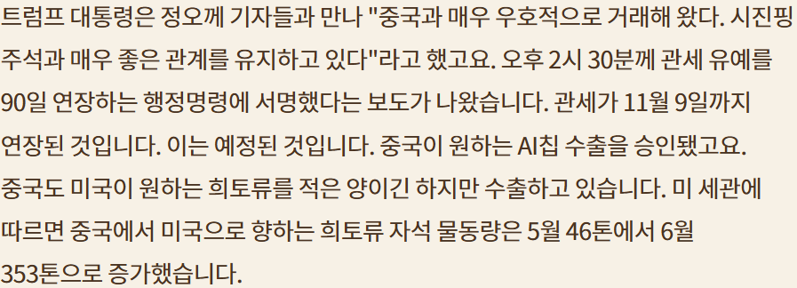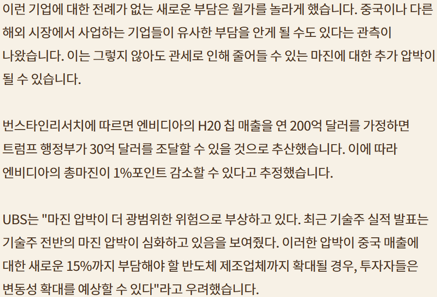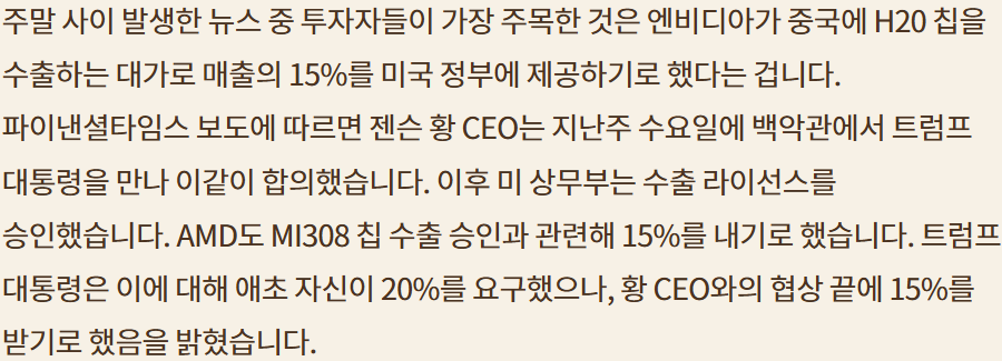 NVDA 칩 중국 수출 일부 미국 관세로; 기업마진 감소; 희토류의 반대 급부로 기업에 관여하는데 적절한 것인가?