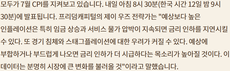 CPI; 시장의 내러티브는 어떻게 소화할것인가?; Long or Short position exposure 줄여서 대응