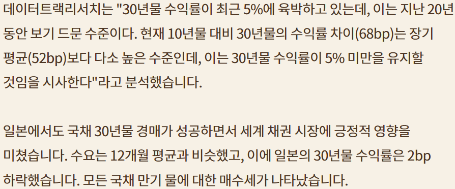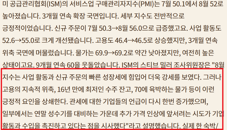 다른 경제 데이터 양호(ISM PMI 등등); 경기침체 신호는 감지되지 않음; 금리하락 & 일본 30년물 경매