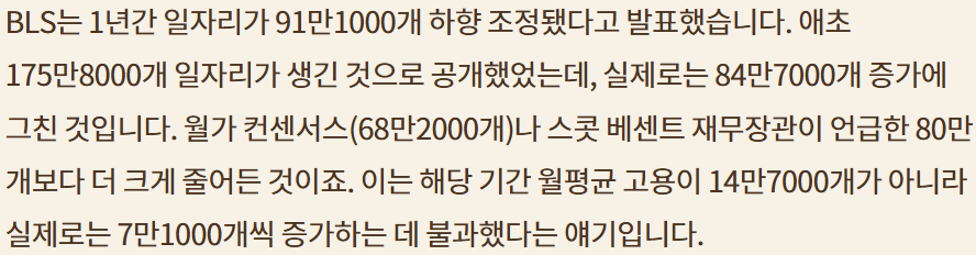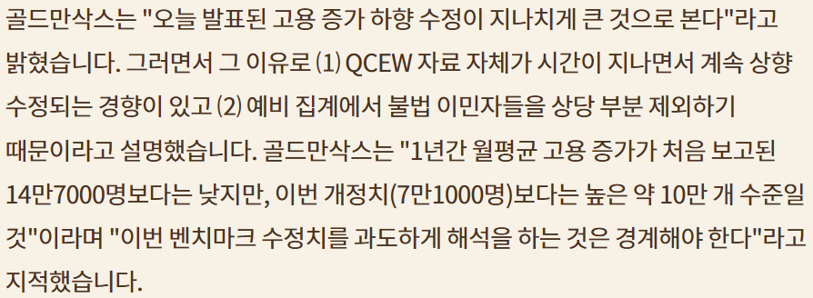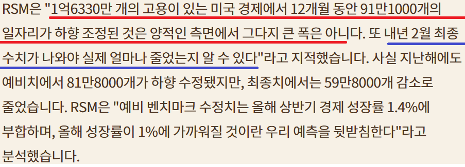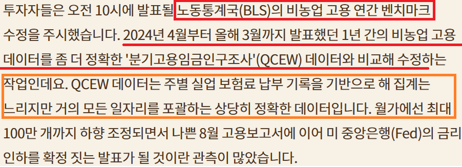 BLS Nonfarm Payroll Bench Mark 수정; 지난친 확대해석 경계;내년 2월 최종 수치로 재 확인 필요;Fed는 이미 수정에 대한 힌트를 얻고 있다고 추정