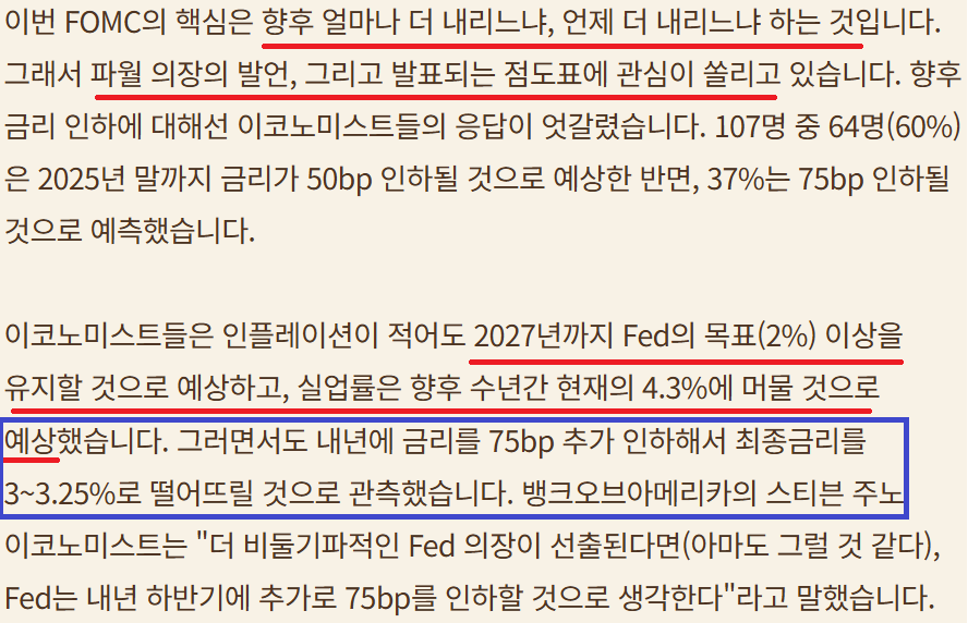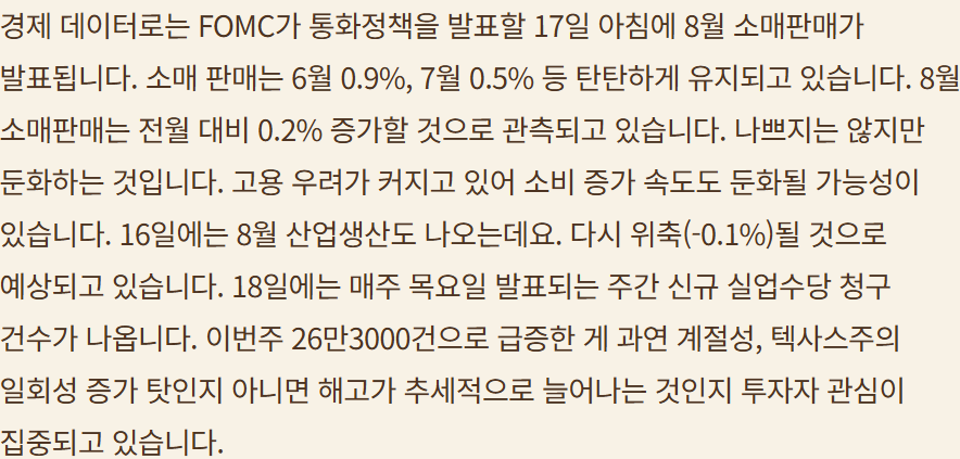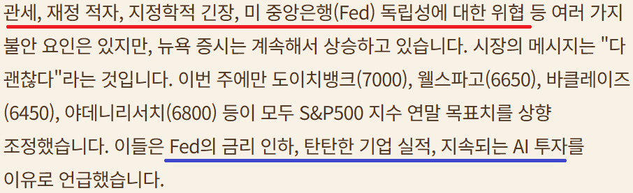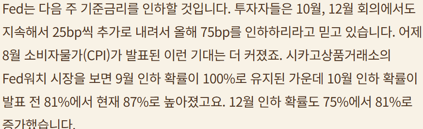 다음주 FOMC에 쏠린 눈들; 얼마나? 언제 더 내릴것인가? ; 노동시장 약화, 관세로 인한 인플레는 아직