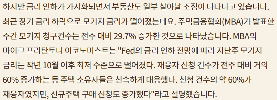 금리 인하 스탠스가 제조업, 부동산 산업에 살아날 조짐을