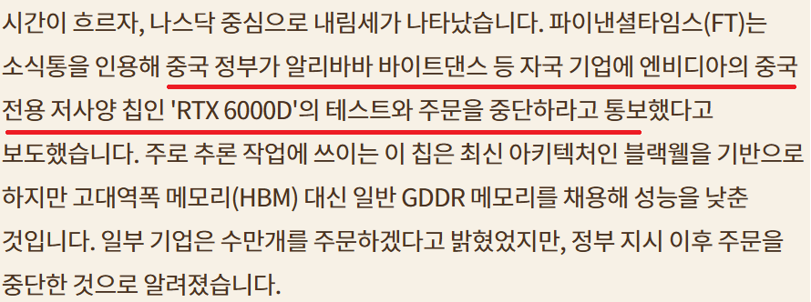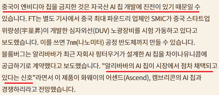 중국정부 NVDA 칩 주문중단; 중국 자국산 AI칩 경쟁력 확보?