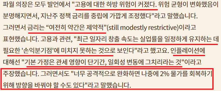 파월 의장 고용 하방 압력 위험성 시사;아직은 제약적 금리 환경;주식은 고평가 영역?; 데이터 보면서 Dual mandate에 충실하지만...Fed 내부의 2026년 중립 금리에 대한 의견이 분분한듯