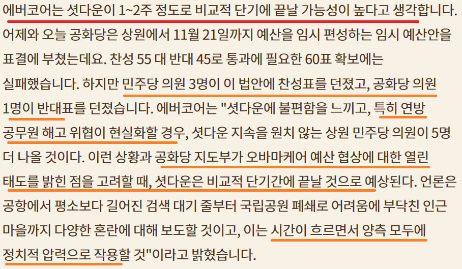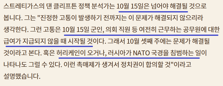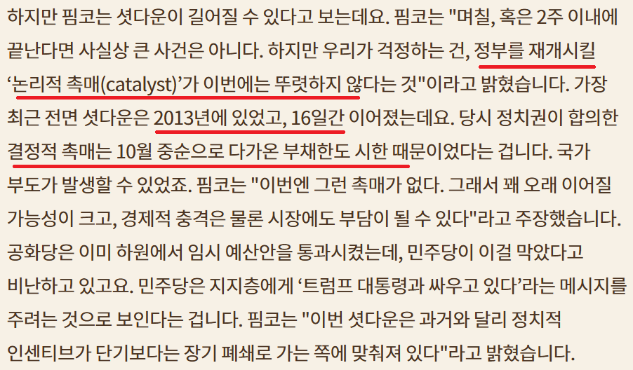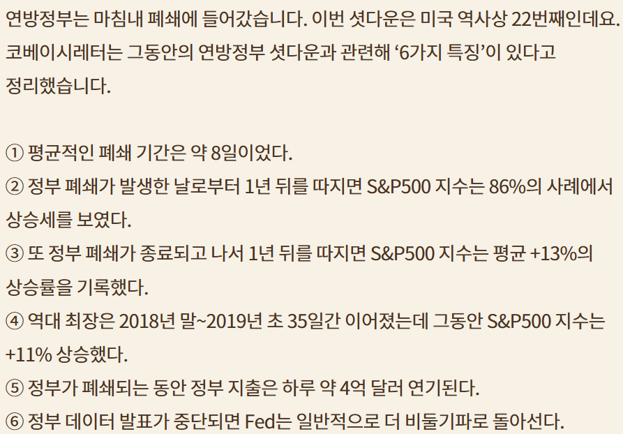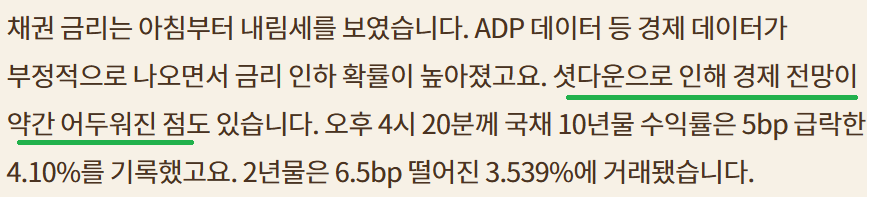 연방 정부 셧다운 영향은 크지 않을듯; 채권금리 하락 & 주가 상승세
