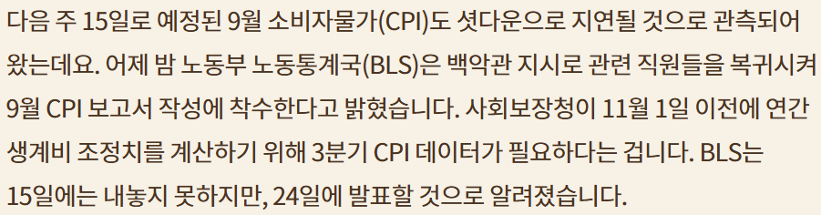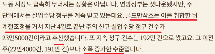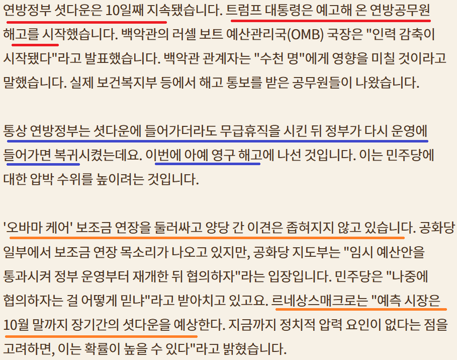 연방정부 셧다운 지속; 공무원 무급휴직이 아닌 해고; 고용시장 영향 고려