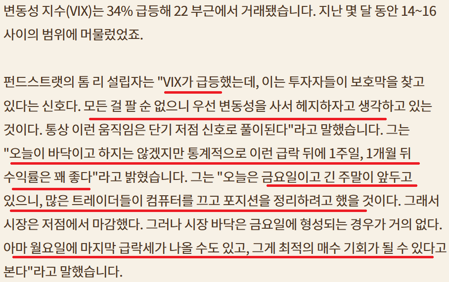 VIX 고려할때 월요일에 한번 더 하락후 상승 가능성 제기도