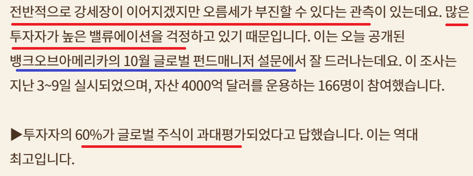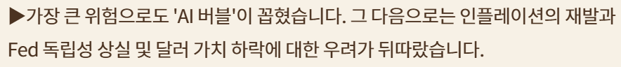 BOA 펀드매니저 Survey; 현재 고평가;기술주 너무 비싸다;AI 버블;인플레우려;Fed 독립성 훼손