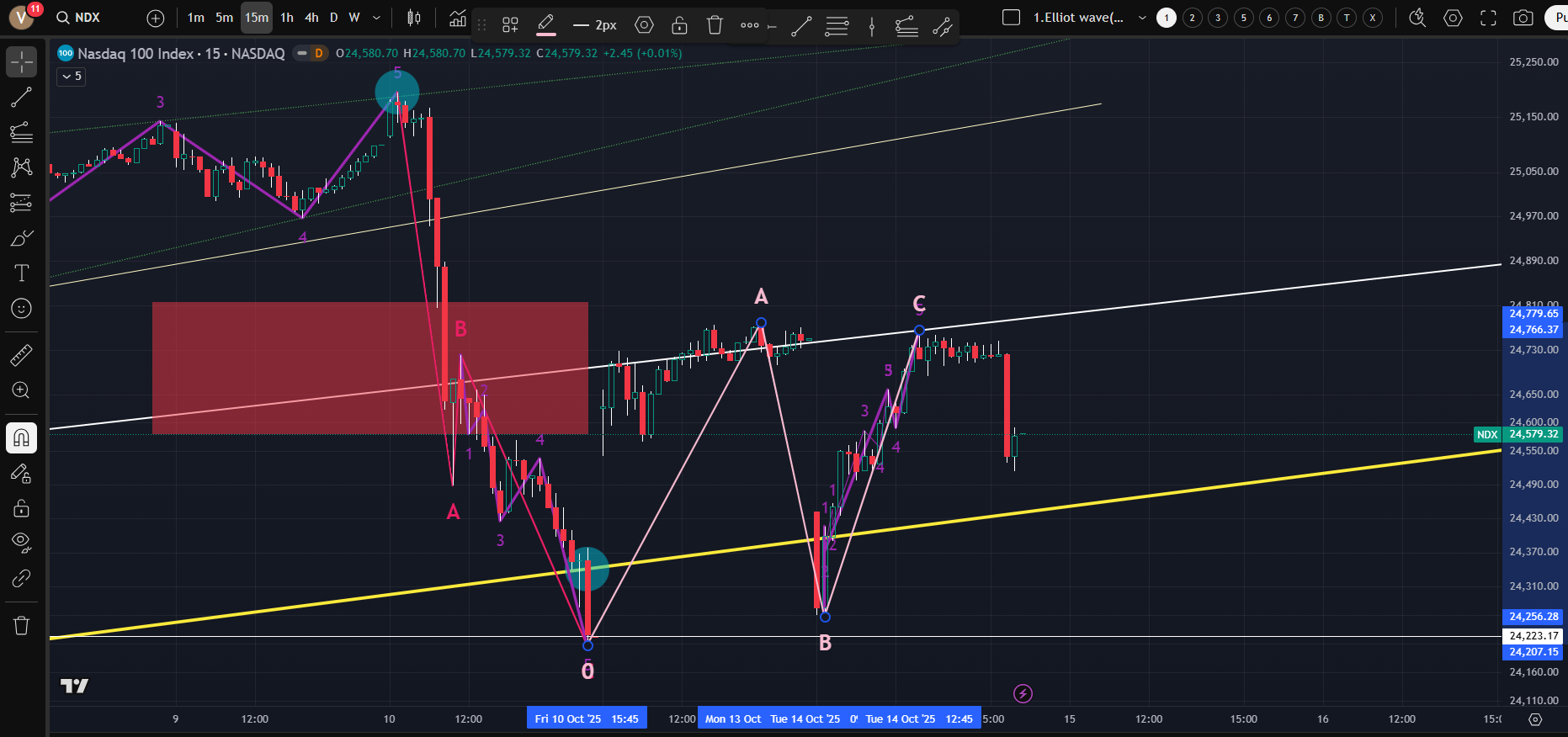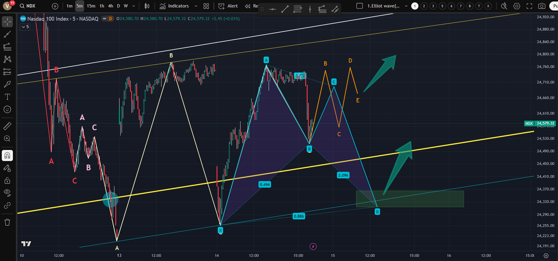 [지그재그 후 플랫 형태로 나오는 작은 x파까지 출현한 상태; 지그재그의 전체 0.618 되돌림이 안되고 있음...이후 무빙은 조금 더; 각 파동이 삼각형의 일부 일수도 있으므로 유심히 관찰이 필요하고, 하모닉 패턴으로 들어갈수가 없다면 역시 관망세가 맞을듯 하다]