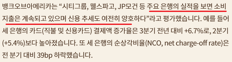 은행실적에서 엿보는 미국 소비는 아직 탄탄
