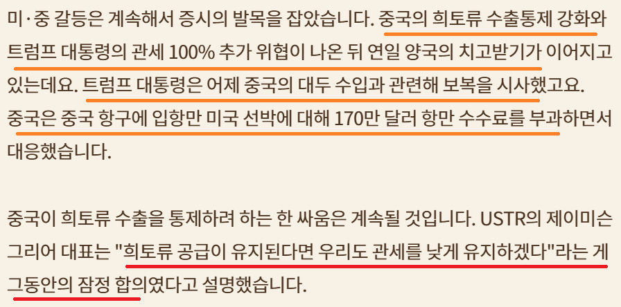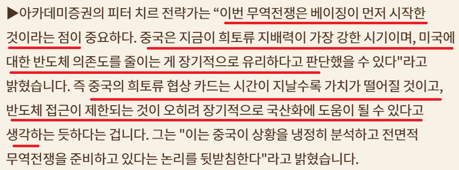 미-중 무역갈등; 핵심은 희토류 관련;아카데미 증권 지적처럼 중국이 희토류를 협상카드로 하면서 서서히 반도체의 미국 의존도를 줄이려는 목적