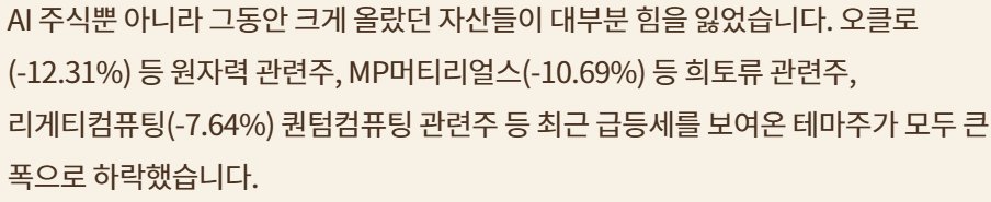 금 급락, AI, 희토류, 원자력, 양자컴등 최근 테마주 하락